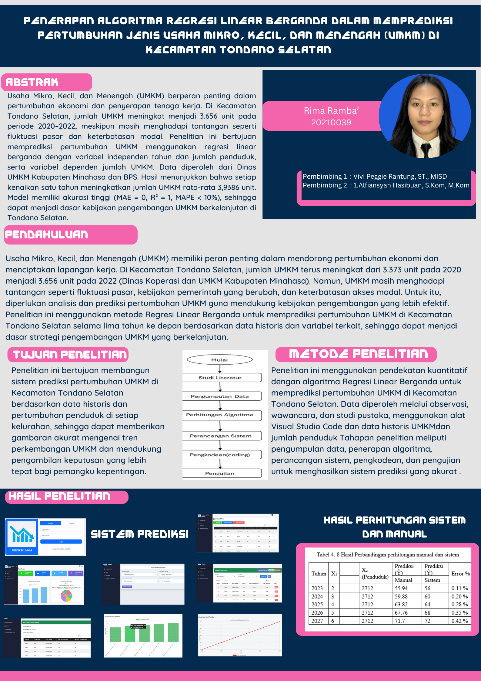PENERAPAN ALGORITMA REGRESI LINEAR BERGANDA DALAM MEMPREDIKSI PERTUMBUHAN JENIS USAHA MIKRO, KECIL, DAN MENENGAH (UMKM) DI KECAMATAN TONDANO SELATAN