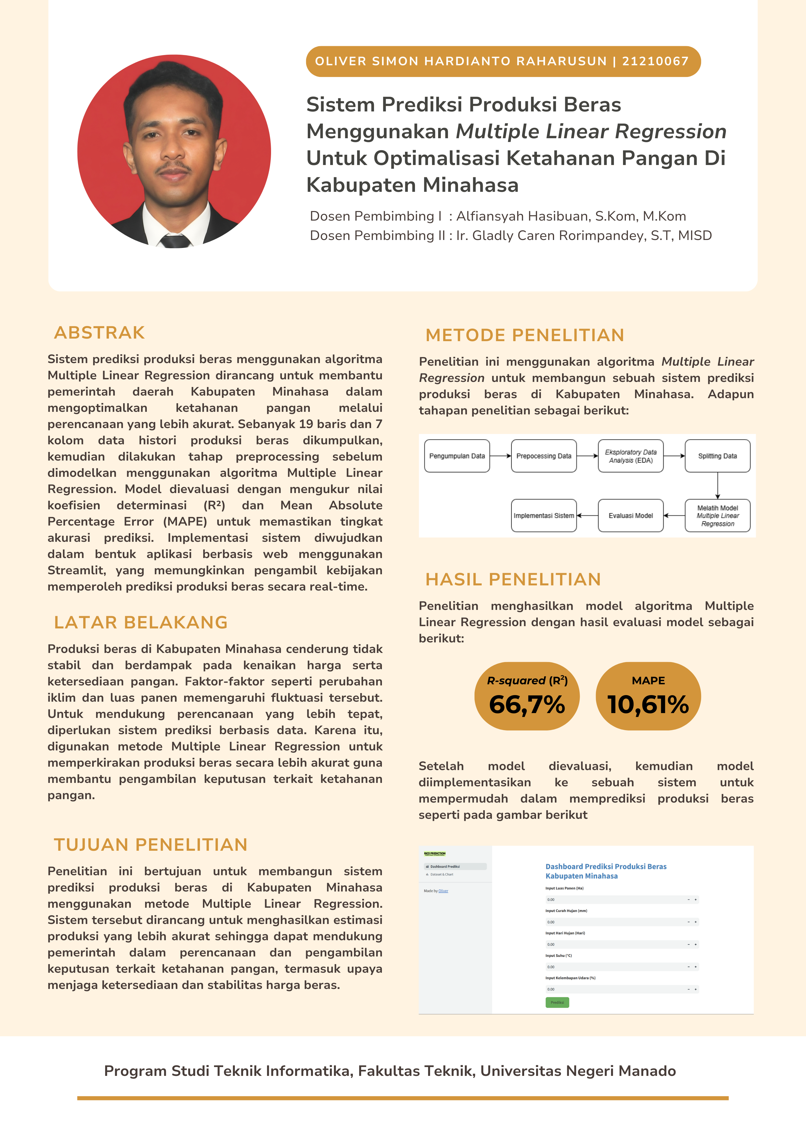 Sistem Prediksi Produksi Beras Menggunakan Multiple Linear Regression Untuk Optimalisasi Ketahanan Pangan Di Kabupaten Minahasa