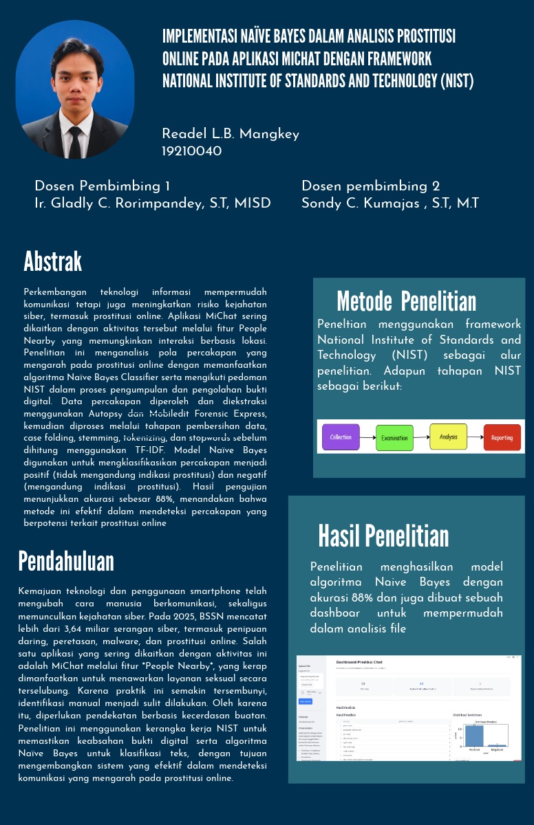 IMPLEMENTASI NAÏVE BAYES DALAM ANALISIS PROSTITUSI ONLINE PADA APLIKASI MICHAT DENGAN FRAMEWORK NATIONAL INSTITUTE OF STANDARDS AND TECHNOLOGY (NIST)