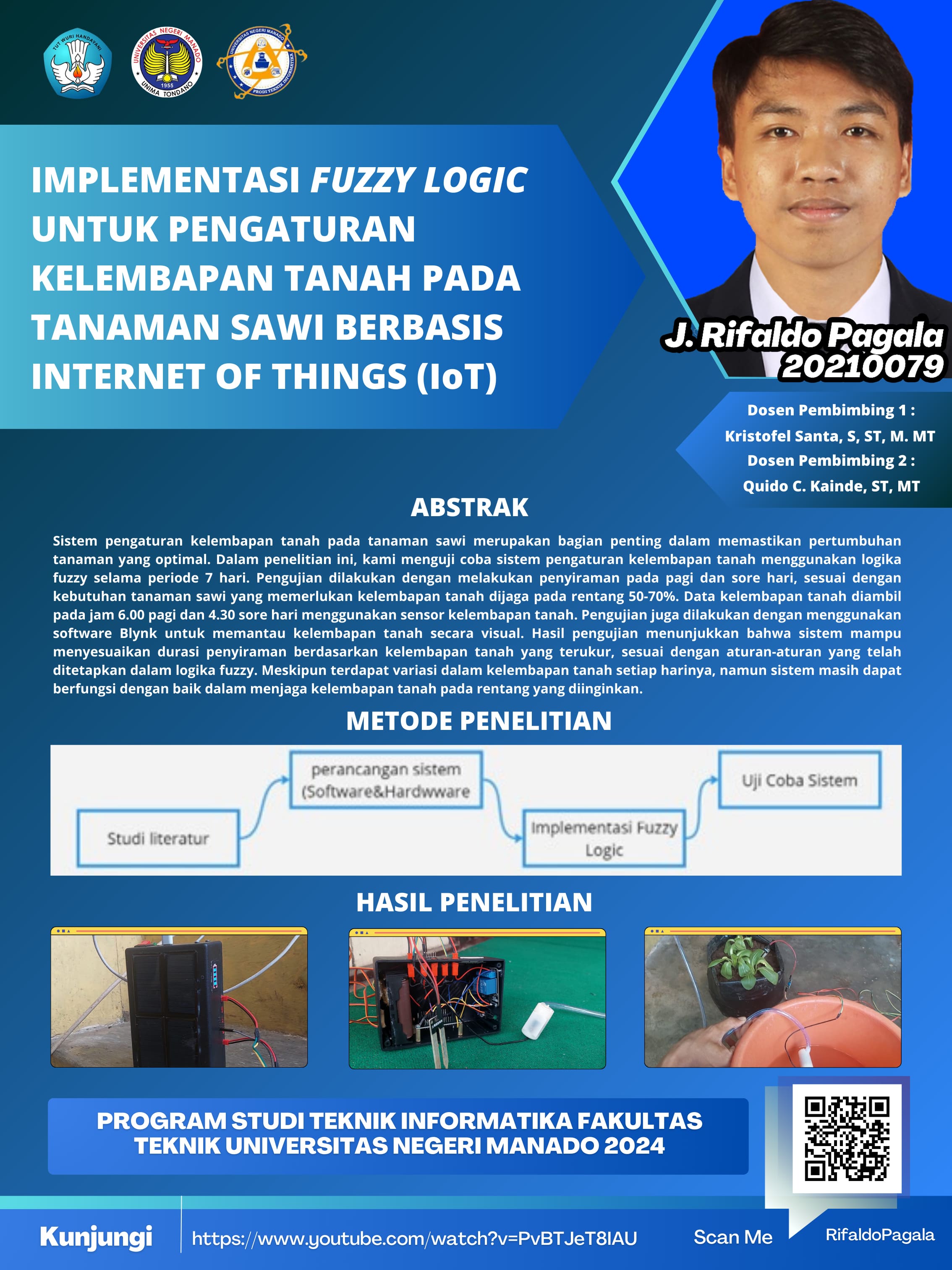 Selama berkuliah di Program Studi Teknik Informatika Universitas Negeri Manado, saya mendapatkan banyak pengalaman berharga, baik secara akademik maupun non-akademik. Materi perkuliahan yang diberikan relevan dengan perkembangan teknologi saat ini, mulai dari pemrograman, basis data, hingga pengembangan sistem. Dosen-dosen juga sangat kompeten, terbuka untuk diskusi, dan selalu mendorong mahasiswa untuk berpikir kritis serta inovatif. Selain itu, lingkungan kampus yang kondusif dan kesempatan mengikuti berbagai kegiatan seperti seminar, proyek, dan organisasi mahasiswa sangat membantu dalam mengembangkan soft skill dan kesiapan menghadapi dunia kerja. Berkuliah di Teknik Informatika UNIMA menjadi bekal penting bagi saya untuk melangkah ke masa depan di bidang teknologi informasi.