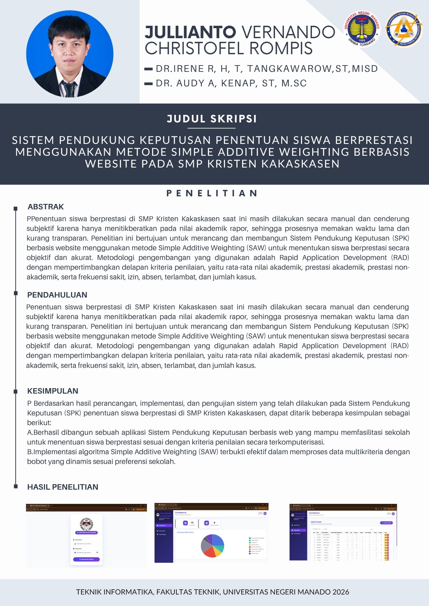 SISTEM PENDUKUNG KEPUTUSAN PENENTUAN SISWA BERPRESTASI MENGGUNAKAN METODE SIMPLE ADDITIVE WEIGHTING BERBASIS WEBSITE PADA SMP KRISTEN KAKASKASEN