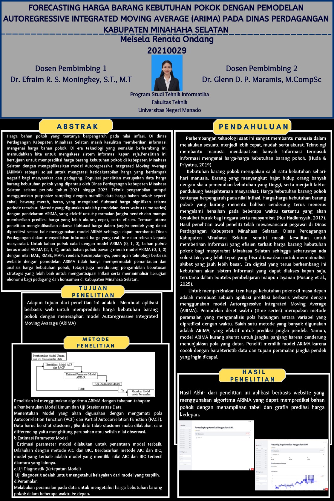 Selama menempuh studi di Program Studi Teknik Informatika Universitas Negeri Manado, saya mendapatkan pengalaman belajar yang tidak hanya berfokus pada teori, tetapi juga pada penerapan nyata di bidang data science dan teknologi informasi. Melalui bimbingan dosen yang kompeten dan lingkungan akademik yang mendukung, saya mengembangkan kemampuan dalam pengolahan data, analisis statistik, serta penerapan algoritma machine learning untuk menghasilkan insight yang bermanfaat. Berbagai proyek dan penelitian yang saya ikuti melatih kemampuan berpikir kritis, pemecahan masalah berbasis data, serta kolaborasi dalam tim. Bekal ilmu dan pengalaman ini menjadi fondasi penting bagi karier saya di dunia data dan teknologi modern.