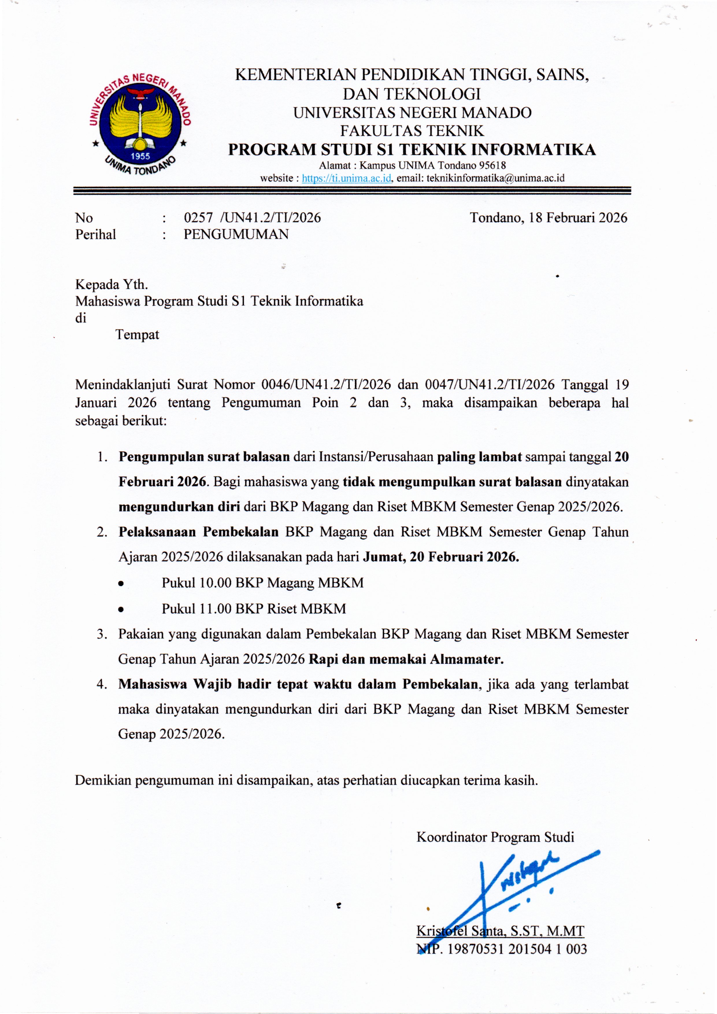 Detail Pengumuman Teknik Informatika Unima